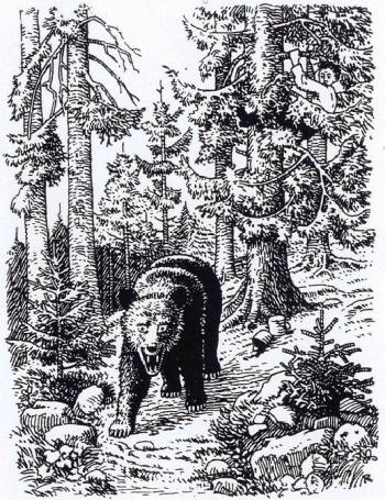 In den Wäldern zwischen Giffers und Praroman hauste ein Bär. Der hatte in der Umgegend schon manches Schaf und manche Ziege zerrissen. Eines Tages veranstalteten die Bürger von Praroman eine Treibjagd, um das böse Vieh unschädlich zu machen. Ein Gifferser sammelte gerade in jenem Walde Harz. Da hörte er Hundegebell und Hörnerschall. Immer näher kam der Lärm. Plötzlich krachten hinter ihm die Zweige, und wie er sich umwandte, gewahrte er einen grossen, zottigen Bären, der brummend auf ihn loskam. Der Gifferser kletterte in der Todesangst schnell auf eine Tanne hinauf. Der Bär ging schnuppernd um den Baum herum und trottete dann weiter. Der Gifferser glaubt sich schon gerettet, da kam aber das Schlimmste erst noch. Die gehetzte Meute stürmte heran und machte plötzlich unter der Tanne Halt. Ein Dutzend blutgierige Hunde bellten zum geängstigten Manne hinauf. Nun kamen die Jäger, sahen in den Ästen droben ein Lebewesen und meinten, nichts anderes als das sei der Bär. „L’OA, L’OA, LE INQUE, LE INQUE“ riefen sie freudig. Schon legte einer das Gewehr an die Wange und zielte. Da rief der Gifferser aus Leibeskräften: „HALT, SCHIESS NIT. I BÜ NIT DER BÄR, I BÜ NUME AN ARMA HARZER VA GÜFFERSCH!“